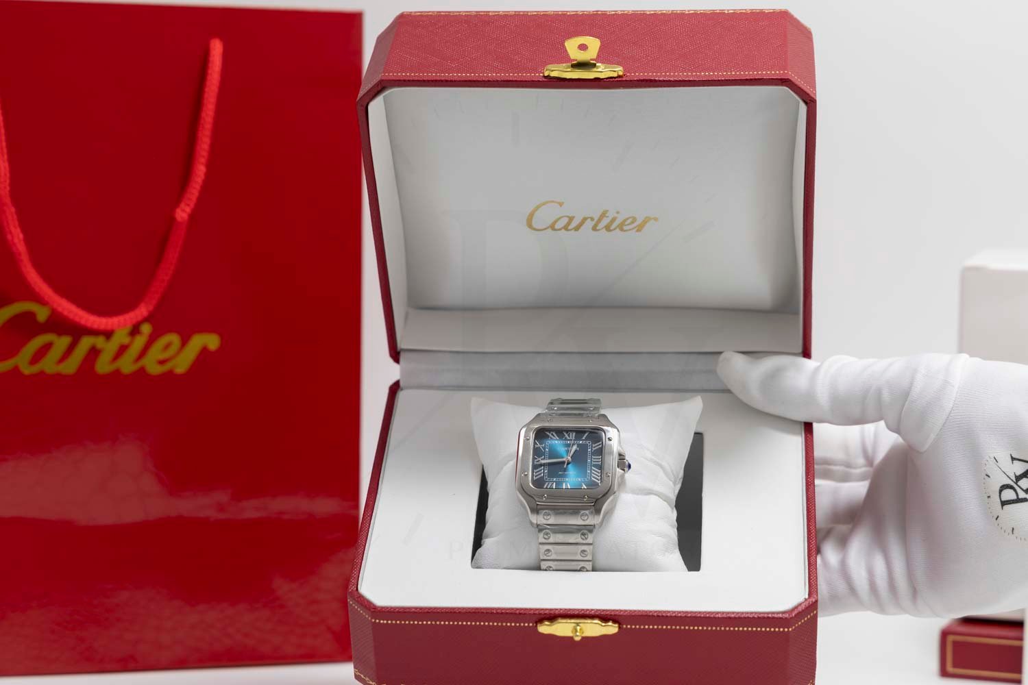 Especificaciones del Cartier Santos 35mm Caratula Azul: