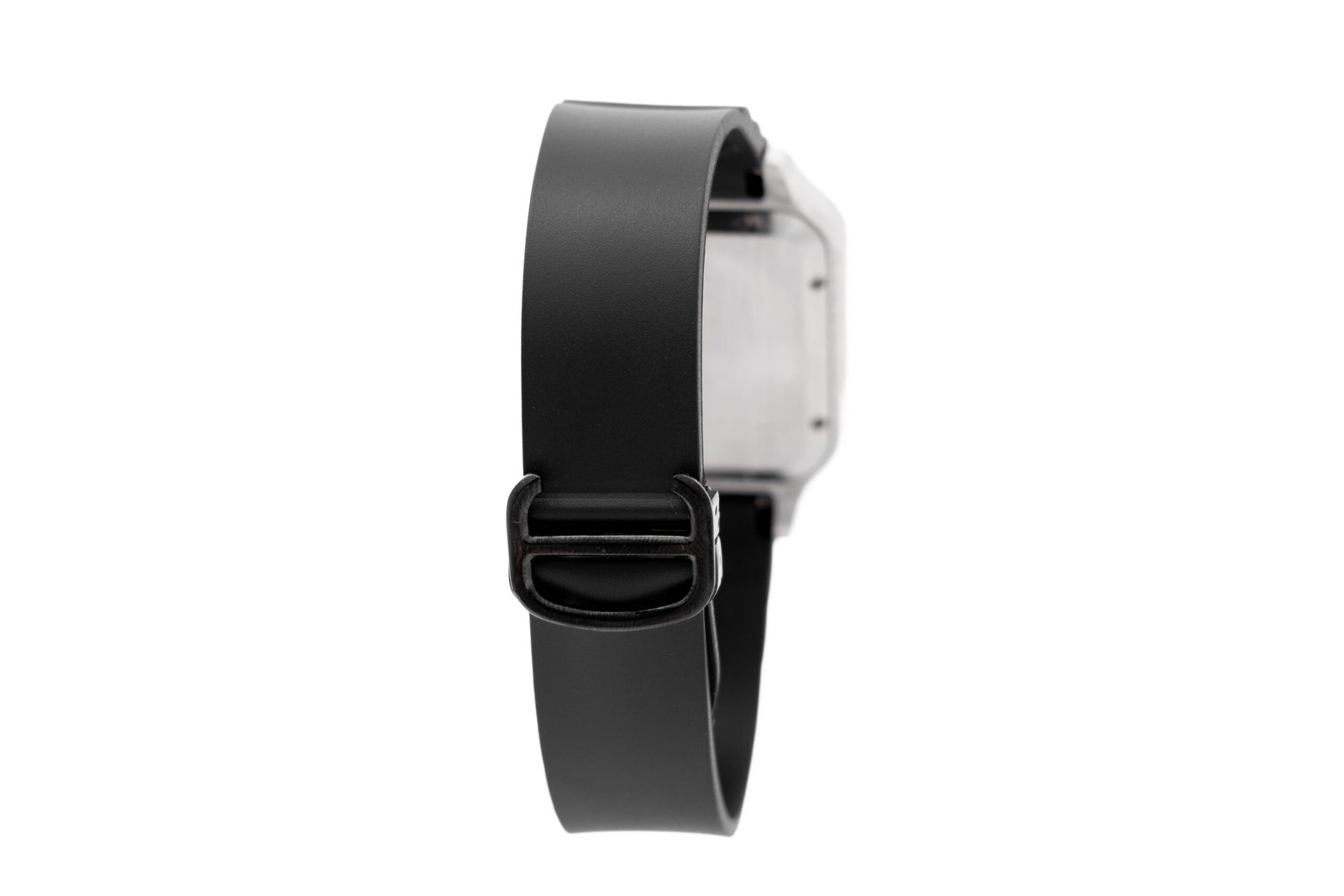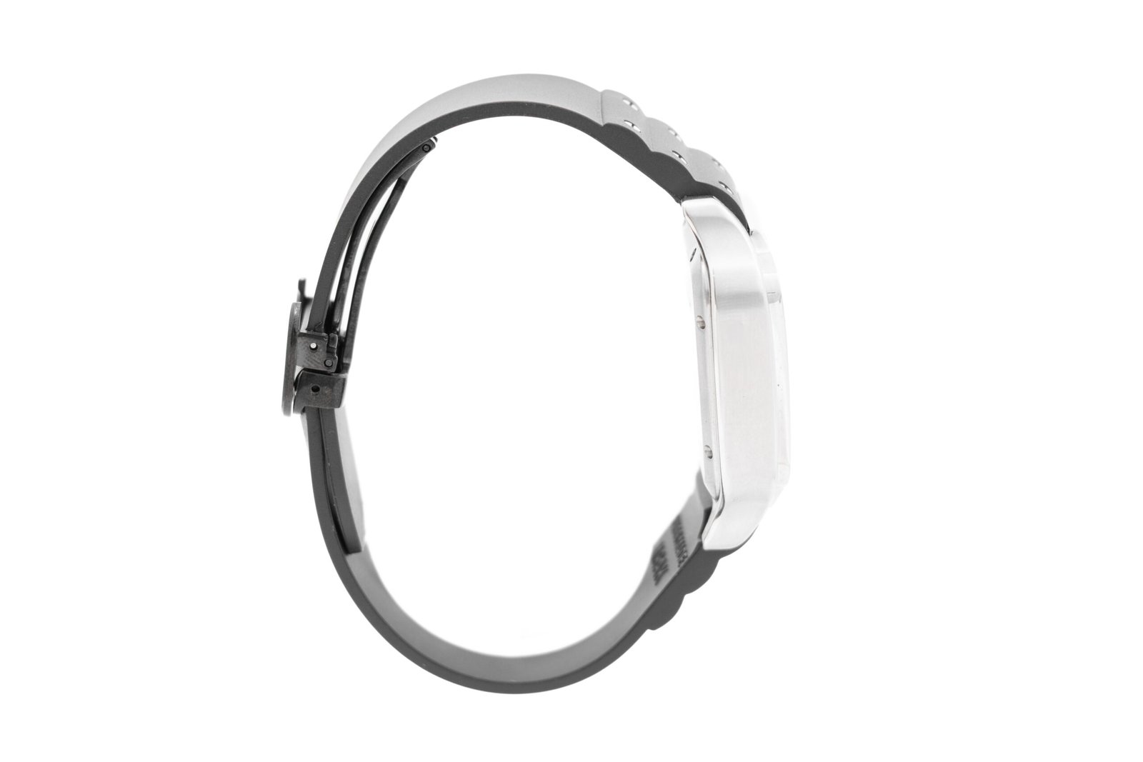 Carátula: Negra con números romanos plateados y manecillas plateadas con fechador.