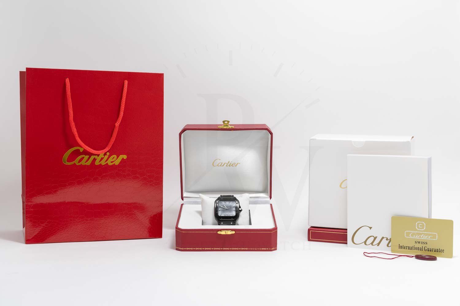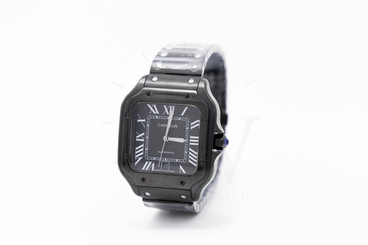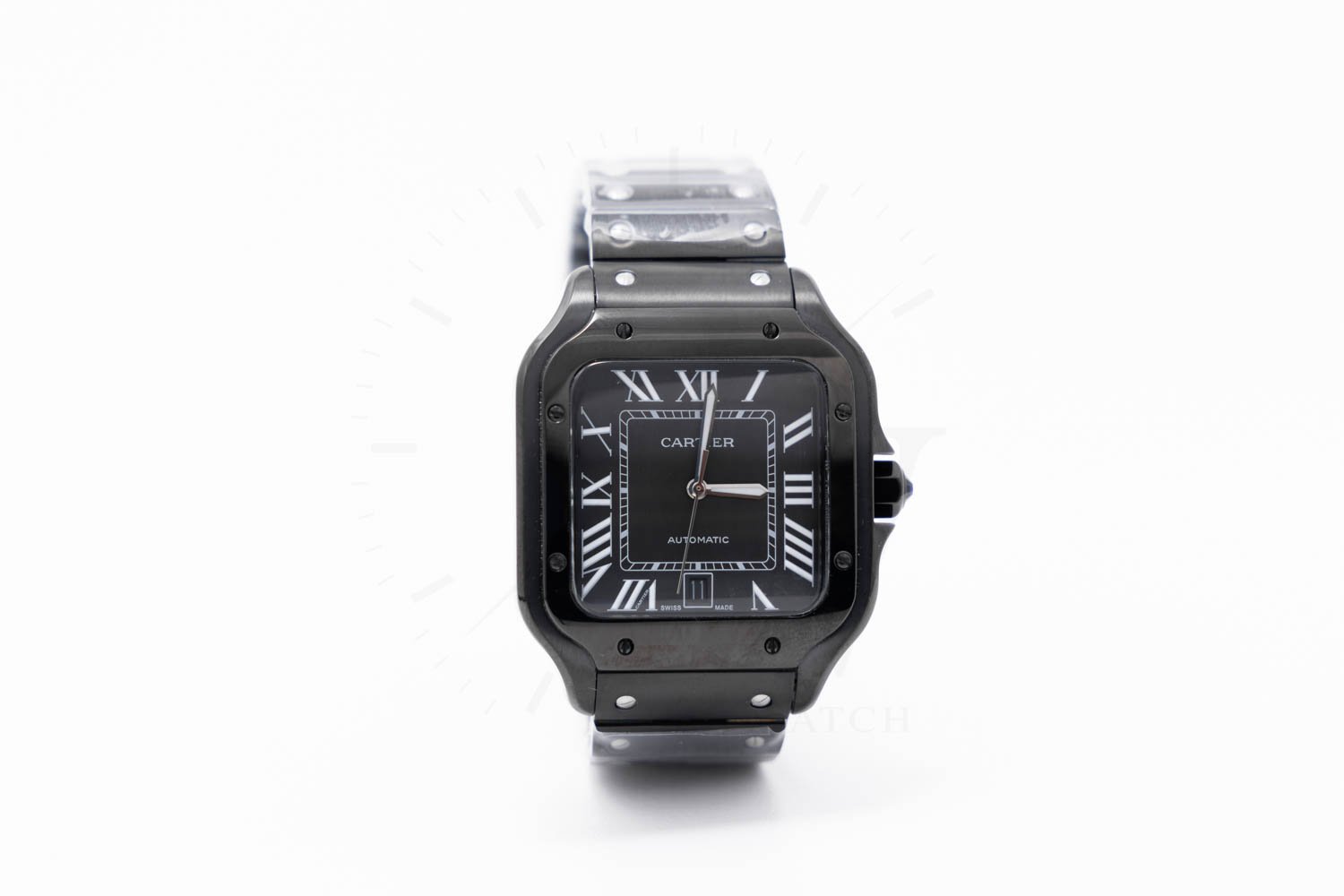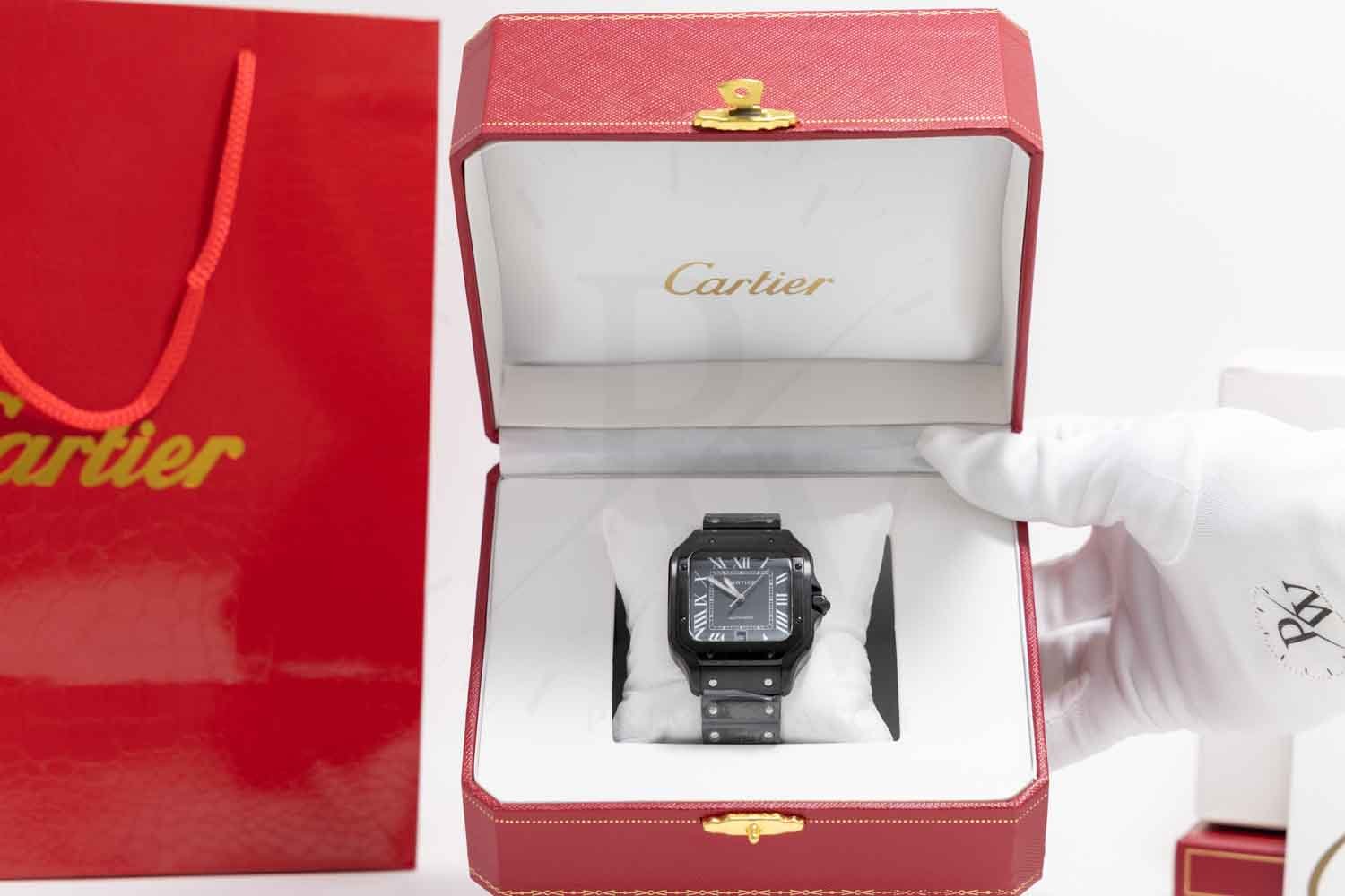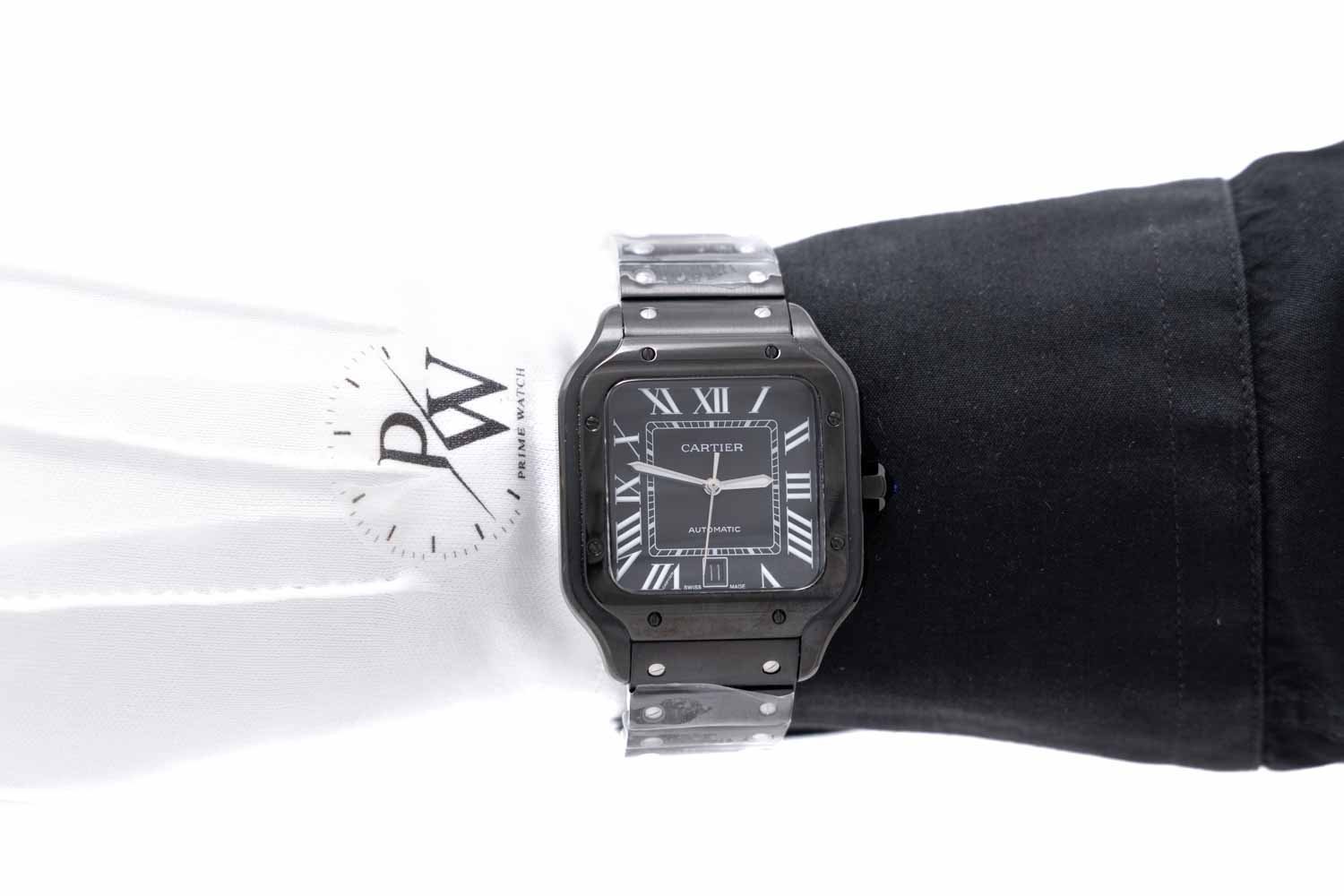 Cartier Santos de Cartier Full Black con movimiento automático japonés, caja de acero inoxidable color negro, carátula negra. Maquinaria japonesa con acabados de calidad media, pueden existir ligeras variaciones en diseño, peso, colores y dimensiones frente al original. Especificaciones: