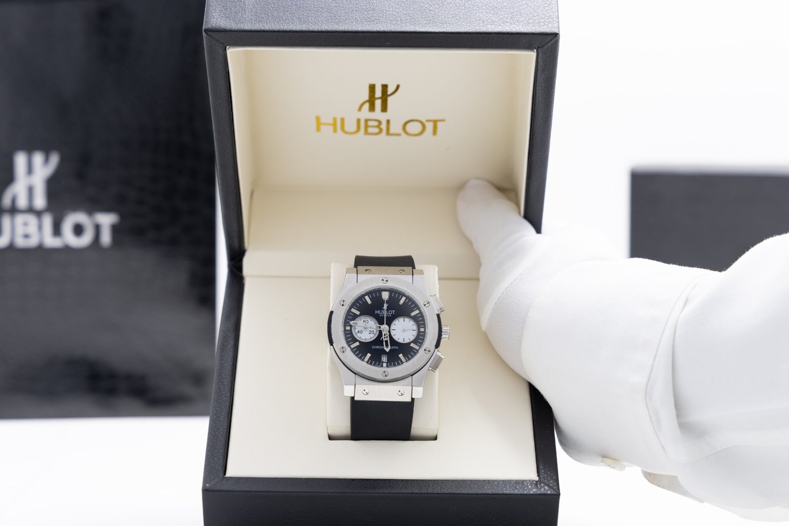 Especificaciones del Hublot Big Bang Classic Fusion Negro Cronógrafo 44mm Cuarzo: Categoría: Caballero. Caja: Acero inoxidable 904L color dorado. Bisel: Negro con tornillos expuestos Carátula: Negra c…