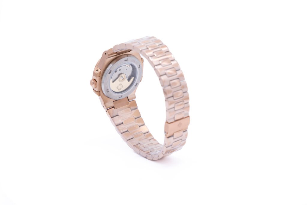 Especificaciones del Patek Philippe Nautilus Oro Rosa Cara Negra Automático: Caja: Acero inoxidable 904L color oro rosa. Carátula: Negra. Cristal: Cristal de zafiro resistente a rayaduras. Movimiento…