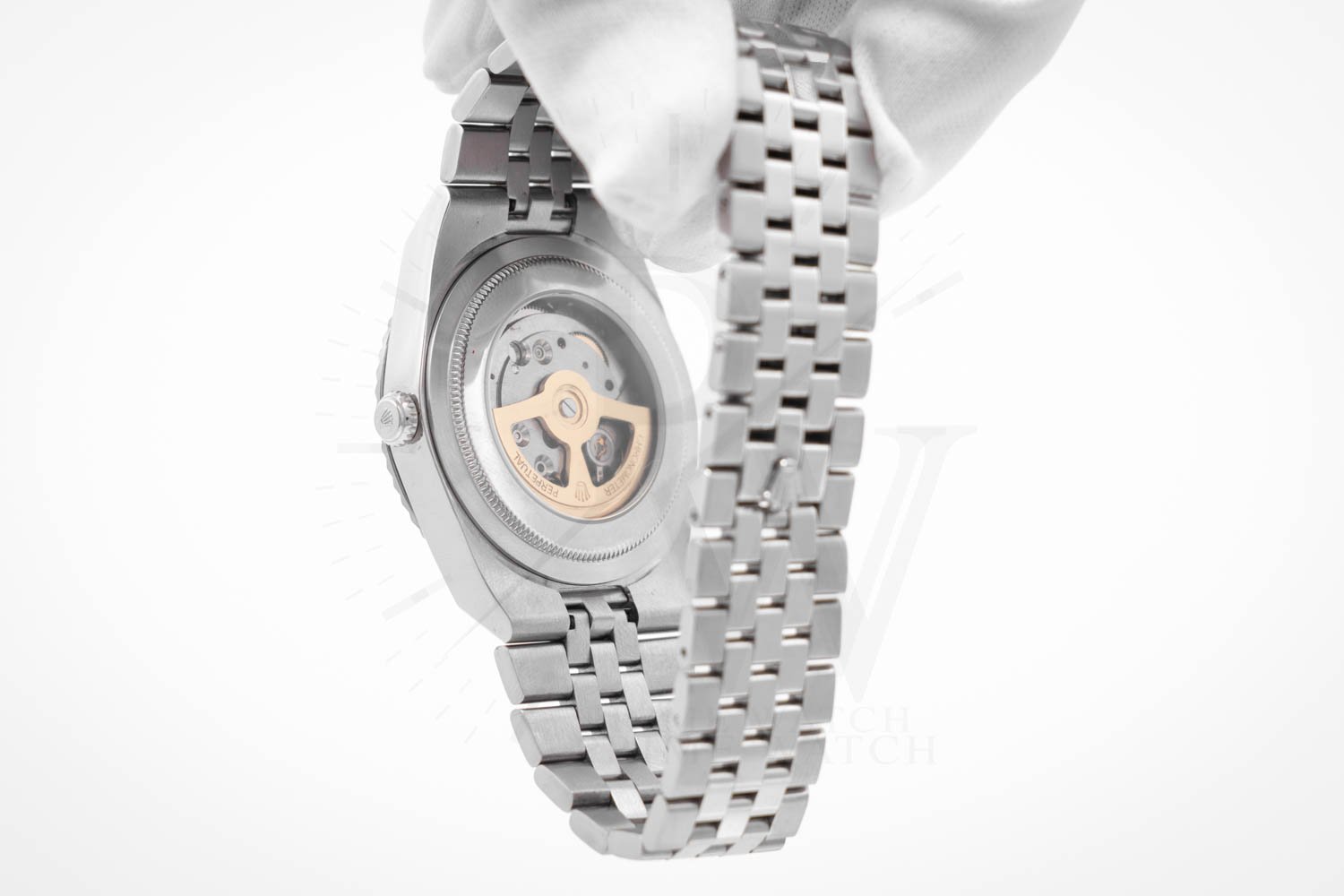 Brazalete: Tipo Jubilee con broche Crownclasp en acero dorado inoxidable.